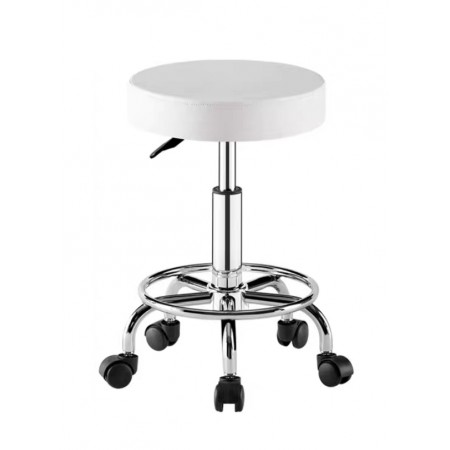 Krómozott talplábtartóval, műbőr borítású ülőfelület, műanyag kerekek.