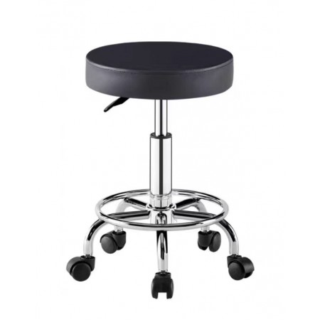 Krómozott talplábtartóval, műbőr borítású ülőfelület, műanyag kerekek.